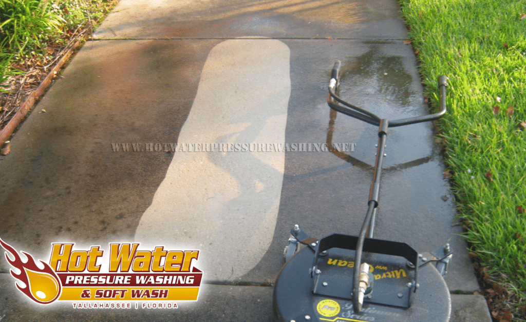 In Tallahassee, that black buildup on your concrete isn't just dirt—it’s algae. Concrete is like a hard sponge; it holds moisture, which allows mold and algae to grow deep in the pores.